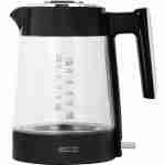 Електричний чайник ECG RK 1750 дизайнерської серії Stripe з першого погляду приверне увагу своїм елегантним виглядом, що поєднує загартоване скло, міцний глянсовий пластик і стильні хромовані аксесуари. Завдяки об'єму 1,7 літра він також ідеально підходить для приготування великої кількості гарячої води за один раз. Зручний водяний знак дозволяє легко бачити кількість води усередині. Чайник працює із вхідною потужністю 1850–2200 Вт, тому він може нагріти воду для чаю чи кави дуже швидко. Стильне синє підсвічування надійно інформує про його поточний стан.