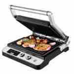 Відмінна риса моделі ECG KG 1000 Gourmet – просунуті налаштування роботи. Гриль має великий екран, де відображаються параметри роботи. Термоконтроль роздільний для сторін. Можна налаштувати температуру на власний розсуд. Це актуально, коли пристрій працює в режимі барбекю і на різних ділянках відбуваються різні кулінарні процеси. Термостати забезпечують покращений контроль температури. При роботі в режимі барбекю доступна функція BBQ Booster для збільшення потужності нагріву та швидкого обсмажування. За рахунок цього продукти зберігають більше соковитості і швидше набувають апетитної скоринки.
