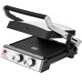 Конструкція електричного грилю ECG KG 2033 Duo Grill & Waffle передбачає наявність плаваючого механізму для щільного притискання панелей одна до одної. При цьому можна вибрати одну з 4 позицій, щоб готувати як у закритому вигляді, так і повністю відкритому на 180 ° (варіант барбекю). Він дозволить одночасно готувати закуски у більшій кількості, проміжне напівзакрите положення – регулювати ступінь підсмажування та здавлювання, відкрите на 90° – забезпечити фартух, що захищає від бризок.