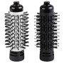 В комплект входят две насадки-щетки, которые позволяют создавать различные прически. Для дополнительной безопасности фен-щетка имеет функцию автоматического отключения при перегреве. Прибор подключается через вращающийся шнур длиной 180 см и легко хранится благодаря специальной петле для подвешивания.