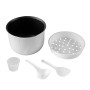 Мультиварка на 5 литров с функцией мой рецепт LIBERTON LMC-5925 Мультиварка LMC 5925 - вещь, в которой Вы будете уверенны долгие годы работы. Все у кого есть хорошая мультиварка, знают, что это максимально удобный и незаменимый прибор на кухне, который умеет всё: запекать, жарить, тушить, печь, варить, готовить на пару, разогревать, размораживать и многое другое.Чаша с качественным антипригарным покрытием объемом 5 литров, и 25 автоматических режимов с множеством задач, с легкостью разнообразят дневной рацион, и отлично подойдут для сторонников здорового питания. Электронное руководство упрощает работу с прибором до минимума, поставить таймер отсрочки (до 24 часов) или выбрать один из режимов приготовления проще простого. Принцип работы мультиварки: внутри расположена антипригарная чаша (кастрюля) с продуктами, которые поддаются термической обработке в различных режимах. Нагрев происходит не только снизу, но и по всему периметру ёмкости, в которой находятся продукты, это обеспечивает равномерное приготовление пищи. Датчики контролируют весь процесс приготовления, следят за поддержанием постоянной температуры. Благодаря такому способу приготовления Вам не нужно все время стоять у плиты, Вы спокойно можете заниматься своими делами. Когда блюдо готово, мультиварка автоматически отключается. Купить мультиварку LIBERTON LMC-5925 Вы можете сделав заказ на нашем сайте или по телефону. Характеристики: Тип: мультиварка Мощность: 900 Вт Материал: металл / пластик Объем чаши: 5л Режимы, кол-во: 25 Программы: плов,рис, каша, гречка, овсянка, молочная каша, суп, сосиски, макароны, варенье, на пару, овощи, соус, детское питание, жарка, фритюр, запекание, тушение, стерилизация, медленно, пицца, йогурт, выпечка, разогрев , мой рецепт Тип управления: электронный Чаша, покрытие: тефлон Поддержка температуры: 12 часов Таймер со звуковым сигналом: есть LED-дисплей: есть Часы: есть / на 24 часа Отсрочка старта: 24 Аксессуары: контейнер-пароварка, лопатка, половник, мерный стаканчик Цвет: чёрный / нержавеющая сталь Вес нетто: 2,6 кг Вес брутто: 3,3 кг Размер : 28,2х26,4х28,9 см Размер упаковки 29х29х31 см Страна-производитель: Китай Гарантия: 12 месяцев * Характеристики и комплектация товара могут изменяться производителем без уведомления