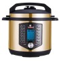 Мультиварка скороварка с функцией су вид YUMMY YPC-602G Мультиварка-скороварка Yummy YPC-602G изготовлена в современном дизайне в золотистом и чёрном цветах. Прибор мощностью 1200 Вт оборудован чашей с антипригарным покрытием SUNA. В модели реализована возможность приготовления 8 способами, в том числе тушением, поджариванием, горячим и холодным копчением, готовкой под давлением до 80 кПа, а также в вакуумной упаковке по технологии Sous-Vide. Устройство обладает 65 режимами, которые выбираются электронной панелью управления с ЖК дисплеем и поворотной ручкой. Пользователь может запрограммировать рецепт любимого блюда и в дальнейшем активировать его одним нажатием. К определённому времени еда готовится с помощью таймера отсрочки на 24 часа, а поддержание пищи в горячем состоянии функцией сохранения тепла может продолжаться в течение суток. Мультиварка-скороварка Yummy YPC-602G оснащена съёмным клапаном и кнопкой выпуска пара, подвижным клапаном индикации работы под давлением. Купить скороварка мультиварка YUMMY YPC-602G Вы можете сделав заказ на нашем сайте или по телефону. Характеристики: Тип: мультиварка скороварка Производитель: YUMMY Мощность нагревательного элемента: 1200 Вт Общий объём чаши: 6 л Язык меню: украинский Тип управления: электронное / поворотный регулятор Количество автоматических программ: 65 Автоматические режимы: каша, рис, гречка, молочная каша, тесто, выпечка, хлеб, тушение, варка на пару, поджаривание, приготовление йогурта, пастеризация, стерилизация, копчение, "свой рецепт" Sous-Vide (продукты в вакууме) Функции: приготовление под давлением (скороварка), поддержание температуры, разогрев Таймер отсрочки Предварительная отмена автоподогрева Управление температурой в процессе приготовления Оснащение: съемная верхняя крышка Комплектация: мультиварка-скороварка с сетевым шнуром и вилкой, крышка скороварки, чаша, влагосборник, ложка, мерная чашка, черпак, решетка для пара и жарки, инструкция пользователя, книга рецептов Габариты в упаковке (ВхШхГ): 31.5 x 37.7 x 31.5 см Вес в упаковке: 6.8 кг Цвет: золотистый / черный Страна-производитель товара: Китай Страна регистрации бренда: Япония Гарантия: 24 месяца * Характеристики и комплектация товара могут изменяться производителем без уведомления