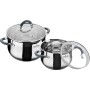 Характеристики:тип набор кастрюльматериал нержавеющая сталь количество предметов в наборе 4 шт крышки стекло / металл 2 штматериал ручек нержавеющая сталь/силиконтип крепления ручек : точечная сварка толщина дна 4 ммкрышки с паровыпуском совместимость с источниками тепла : подходит для всех видов плит Особенности:комплектация : кастрюля с крышкой 18 x 11.5 см, объём 2 л - 1 шт кастрюля с крышкой 24 x 14.5 см, объём 5 л - 1 шт можно мыть в посудомоечной машинеуход за посудой из нержавеющей стали : перед использованием промыть посуду в теплой воде с моющим средством с помощью мягкой губки не использовать для мытья металлические губки, абразивные материалы, едкие, хлор- и кислотосодержащие очистители во избежание пригорания продуктов ингредиенты следует помещать только в хорошо прогретую посуду страна-производитель товара Китай страна регистрации бренда Англия вес 3.06 кг цвет стальной гарантия 12 месяцев * Характеристики и комплектация товара могут изменяться производителем без уведомления