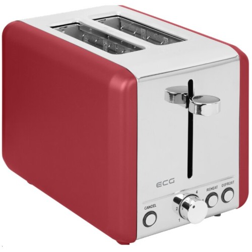 Тостер ECG ST 2708 Tradizione Corsa стильный и функциональный с матово-красной отделкой и элементами из нержавеющей стали станет украшением для кухни.