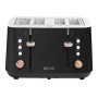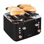 Оригинальный дизайн тостера из черной нержавеющей стали с деревянными элементами. 7 степеней интенсивности поджаривания и 4 отсека для тостов, идеально подходящих как для тонких, так и для толстых ломтиков (широкие слоты). Практичные функции размораживания и подогрева. Автоматическое центрирование для равномерного поджаривания. Встроенная решетка для подогрева булочек. Съемный поддон для крошек, упрощающий уборку, а термоизолированные стенки обеспечивают безопасность.